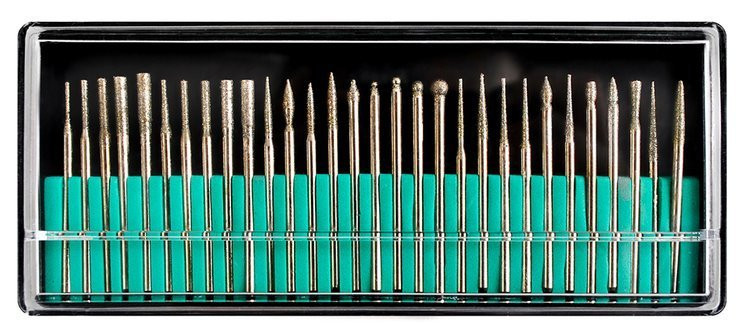 • 36 gyémántvágót - ezek tökéletesen alkalmasak hibrid lakk, zselé vagy akril eltávolítására, körömágybőr eltávolítására és a körmök polírozására, körmök tisztítására alulról, stb.