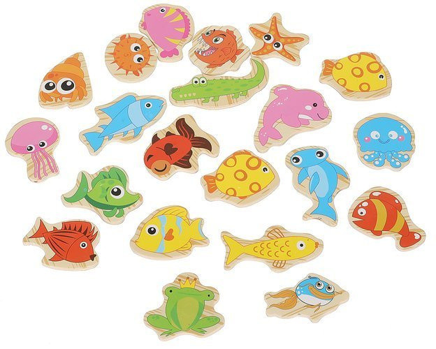 A játék egy érdekes készlet, amely 22 tengeri élőlényből, 2 horgászbotból és egy dobozból áll, amely szórakoztató akváriumként használható. A horgászbotok és a tengeri élőlények kis mágnesekkel rendelkeznek, ami kétségtelenül vonzóbbá teszi a játékot, és megkönnyíti a fogást.