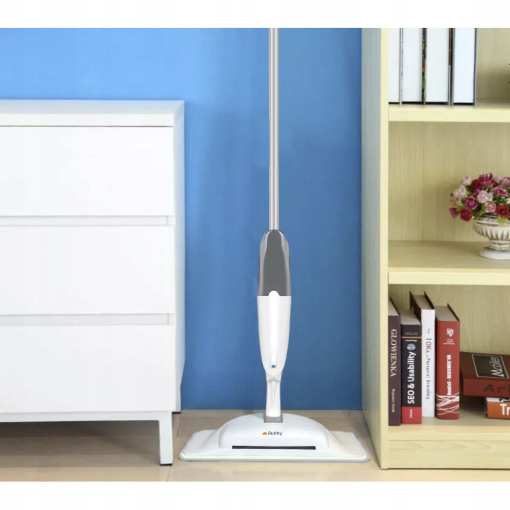 • SPRAY FUNKCIÓ  – egy víz- és mosószeres tartállyal ellátott tartály megkönnyíti az erős szennyeződések tisztítását. Ennek a felmosónak az az előnye, hogy nem kell időnként egy vödör vizet mozgatnia – a permetezővel ellátott felmosó biztosítja a gyors és kényelmes mosást. Csak használja a permetezőt a padló nedvesítéséhez. A 300 ml-es tartály könnyen megbirkózik egy nagy helyiség mosásával.
