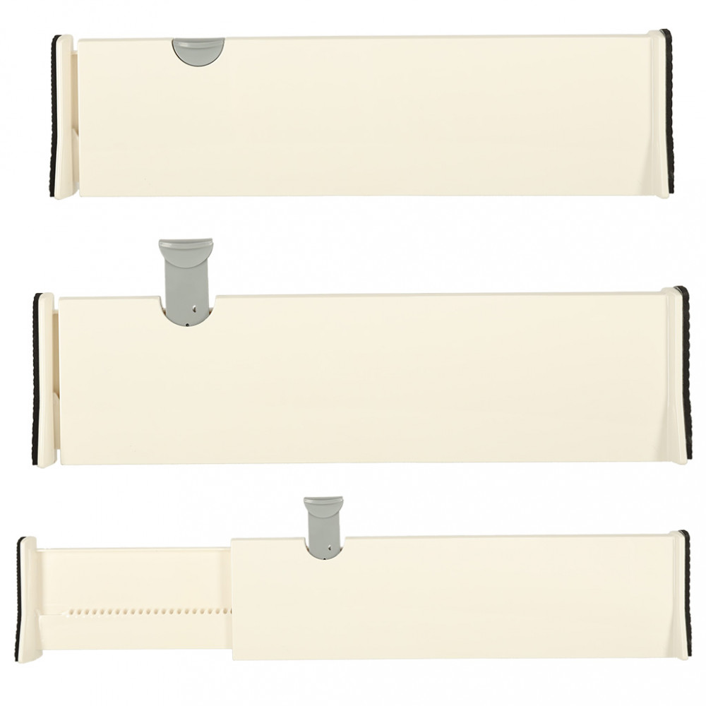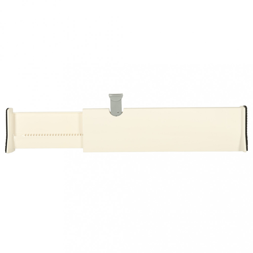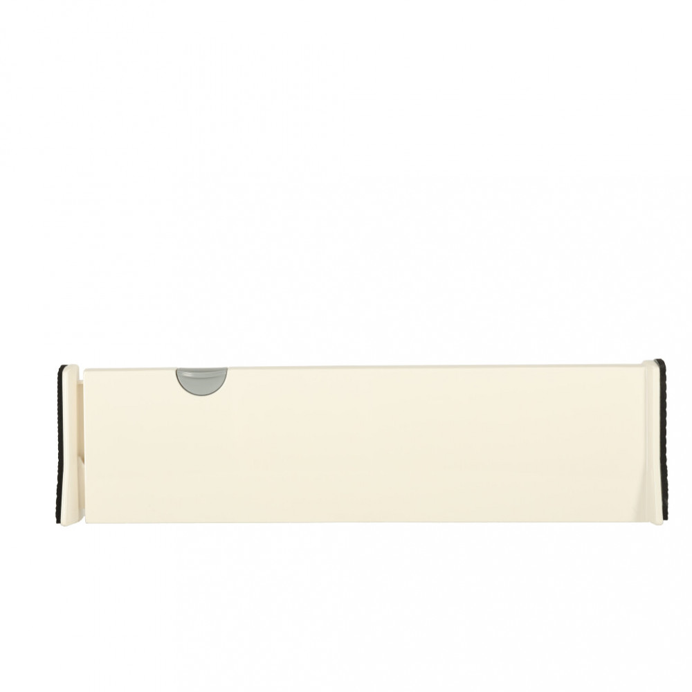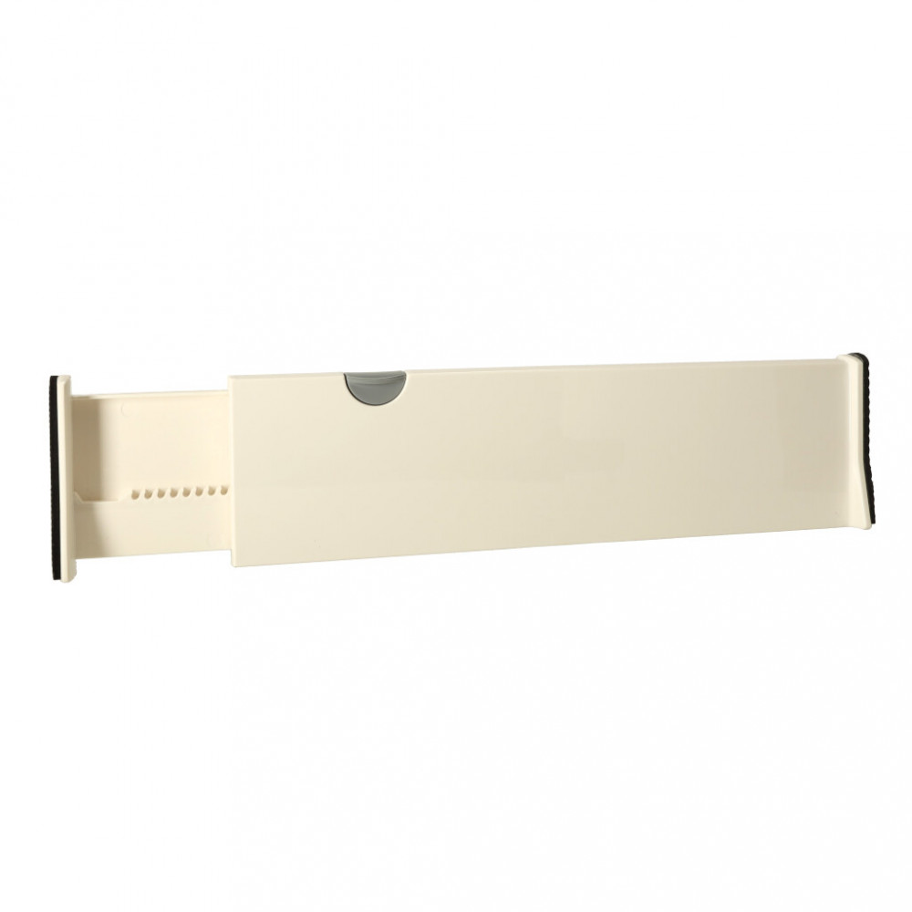 Műanyag fiókelválasztó - megkönnyíti a nagy fiókokban lévő tárgyak szétválasztását és rendszerezését. Az elválasztó szélein szivacs található, hogy megakadályozza a fiók megkarcolását. Szín: fehér. Maximális hossza: 54,5 cm. Magasság: 10,3 cm.
