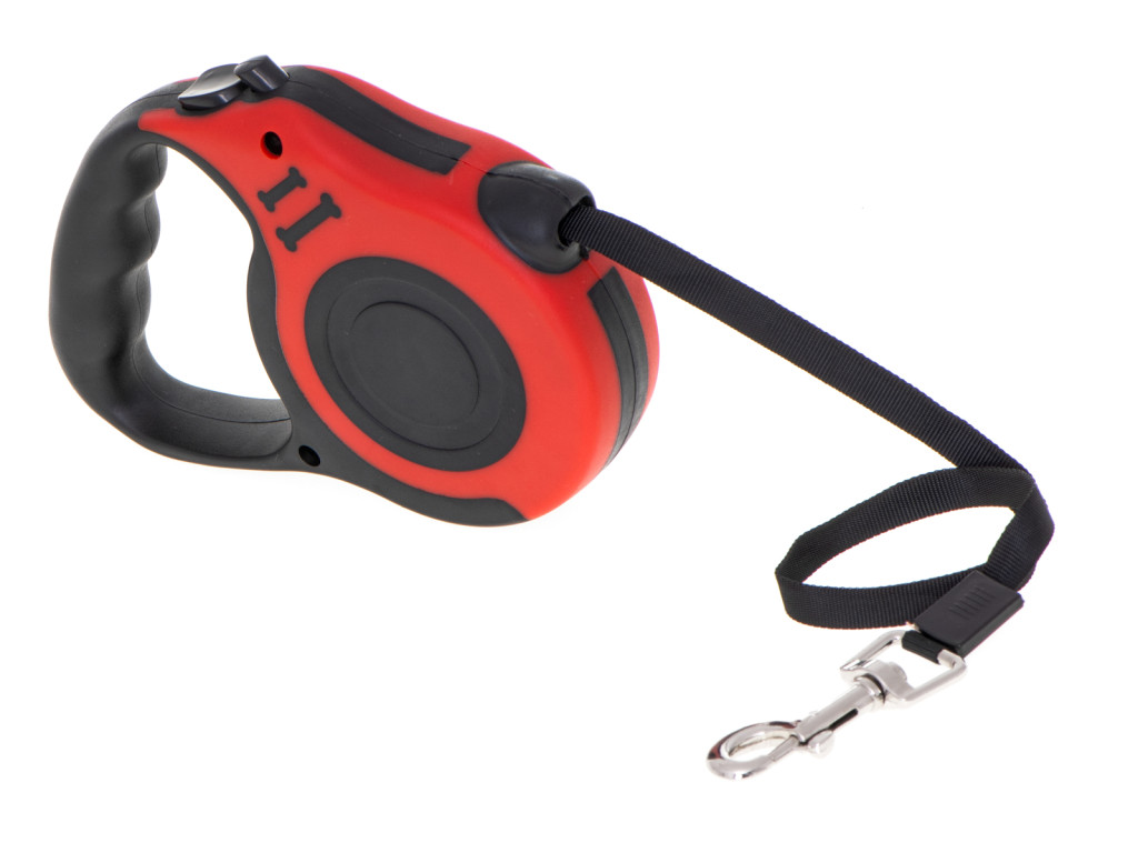 Automatikus pántos póráz kutyáknak, macskáknak 14 kg-ig. Praktikus és nélkülözhetetlen eszköz minden sétához. A praktikus fogantyú bármelyik kézben elfér. Automatikus reteszelő és visszahúzó rendszerrel rendelkezik. Szín: piros. Maximális hossza: 5m.