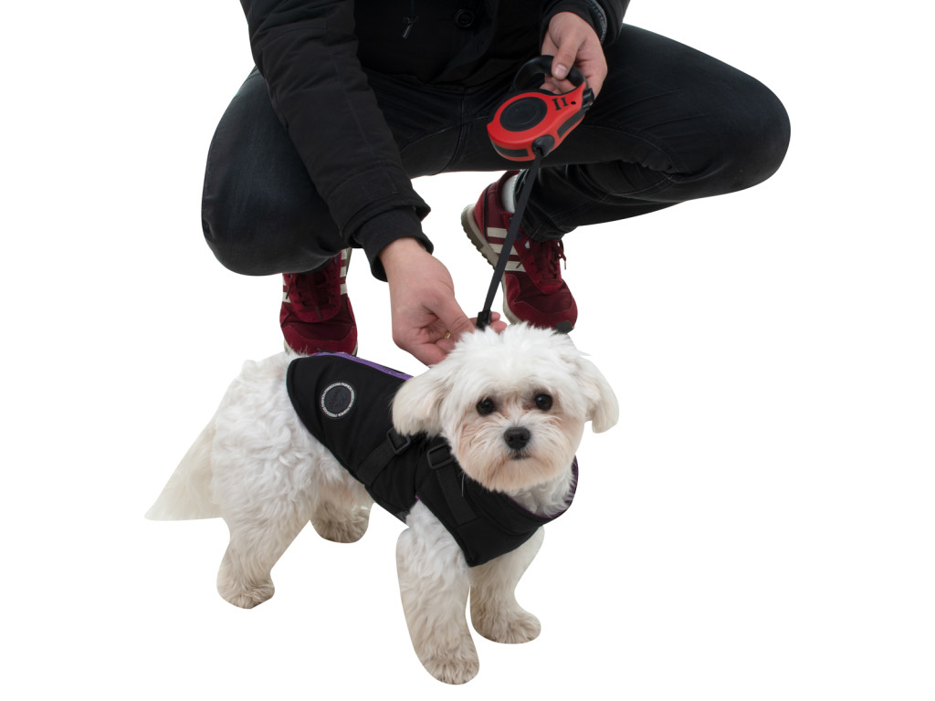 Az udvari séták során a biztonságot egy robusztus automata póráz garantálja.