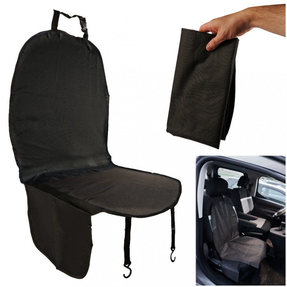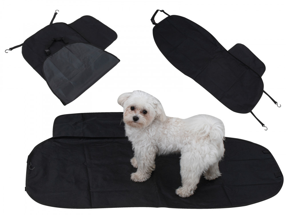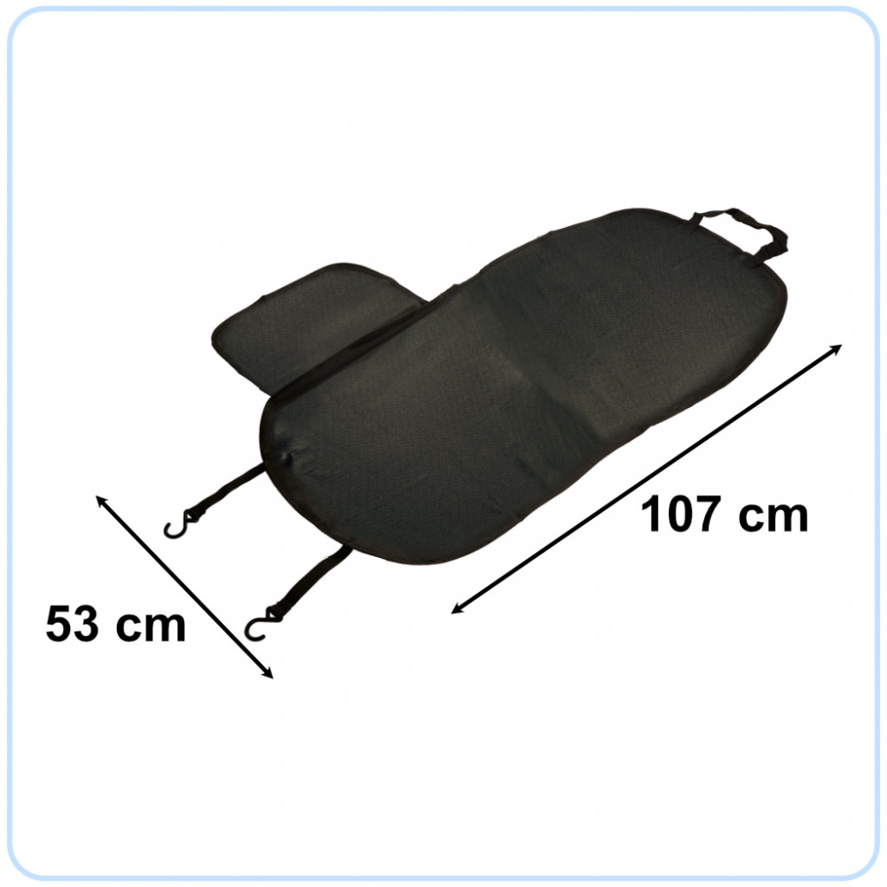 Védő és vízálló autóüléshuzat háziállatok számára. Védi a kárpitot a szennyeződésektől. Mind az első, mind a hátsó ülésekre felszerelhető. Könnyen telepíthető és tisztítható. Szín: fekete. Méretek: 107x53cm.
