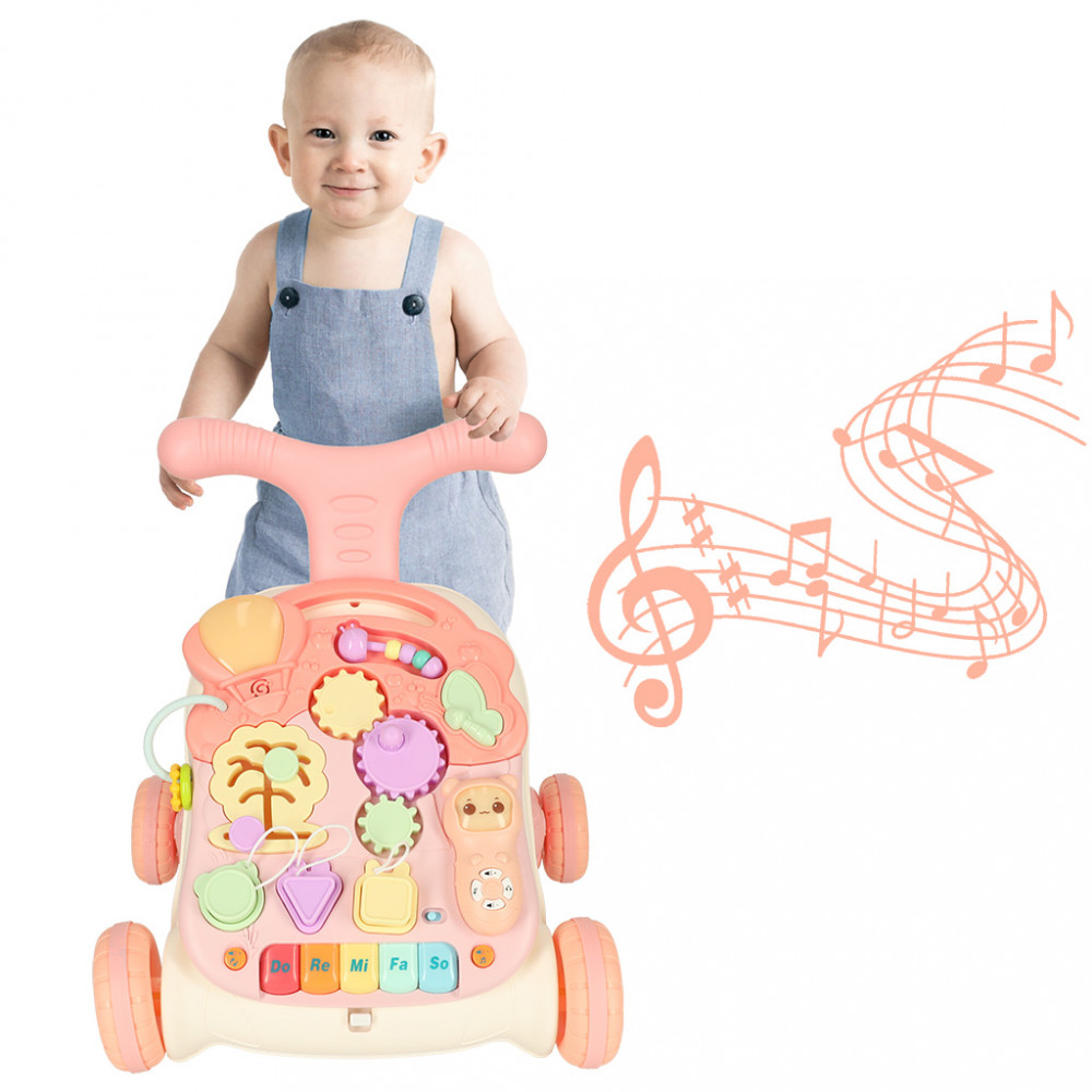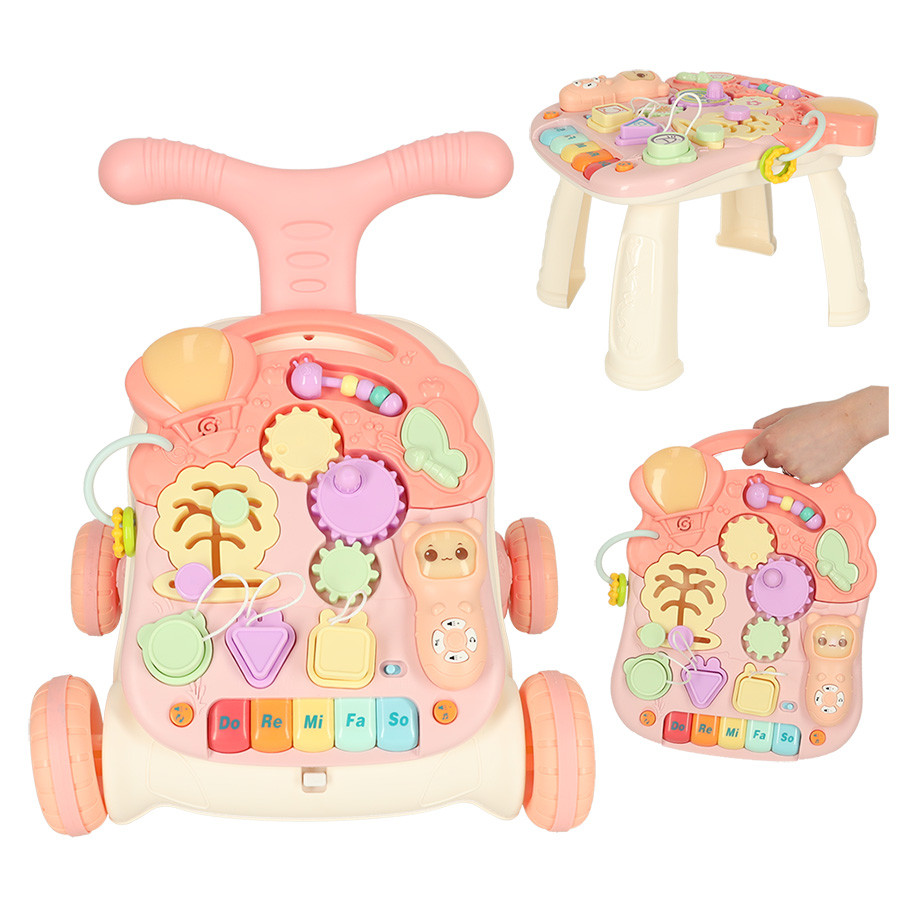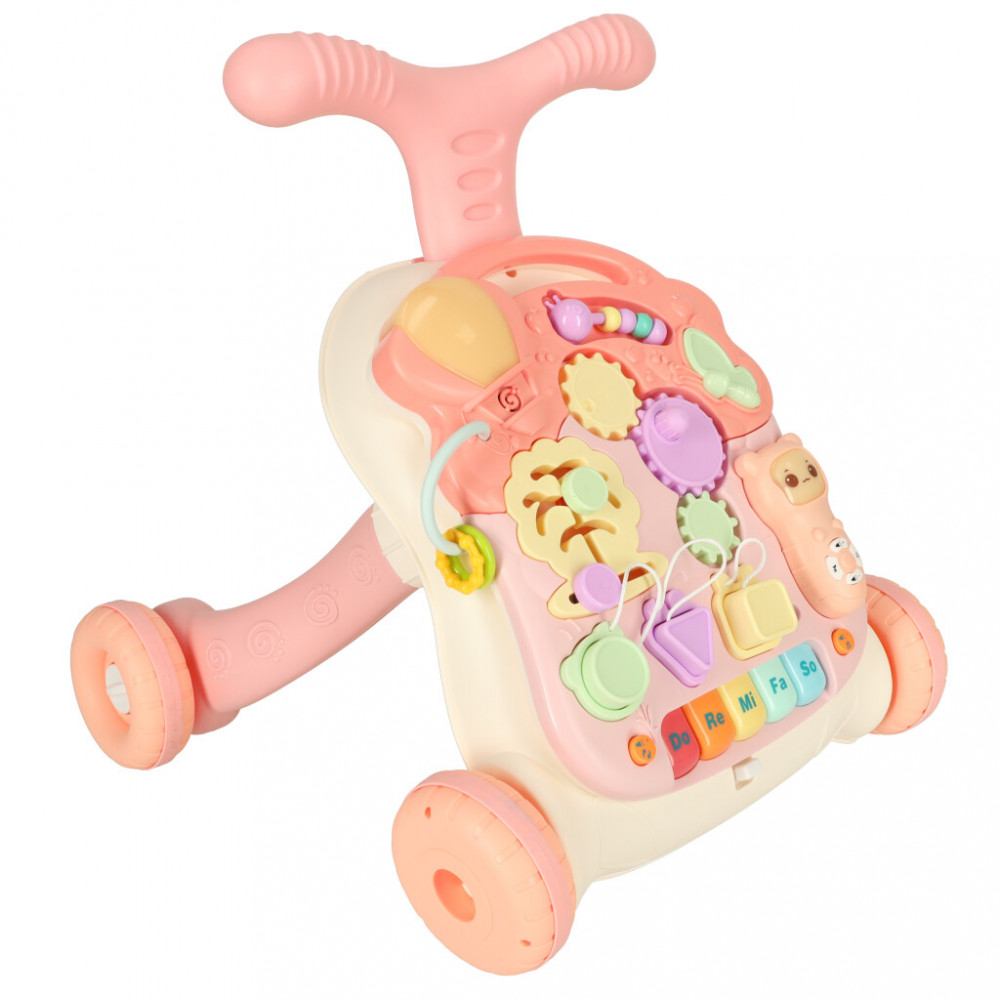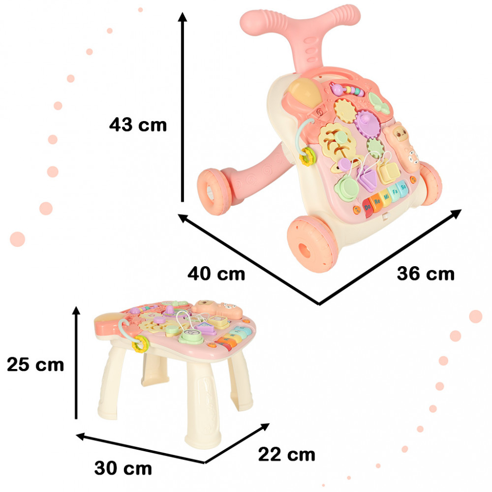 Babajáró 2in1 - a járókeret interaktív asztallá alakítható. A terméken számos olyan elem található, amely nagy hatással lesz a gyermek fejlődésére - manuális és intellektuális készségekre. Anyaga: műanyag. Járókeret: 36 cm x 40 cm x 43 cm.