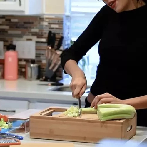 • TERMÉSZETES BAMBUSZFA - bambuszfából készült konyhai deszka egyszerű formával rendelkezik, melynek köszönhetően a modern konyhákba is illeszkedik. A bambusz megfelelő anyag konyhai kiegészítők gyártásához, mert: nedvességálló, antibakteriális, könnyű, egészségre biztonságos, nem szívja fel a szagokat, nem színeződik el, nem deformálódik és megfelelő keménységű.