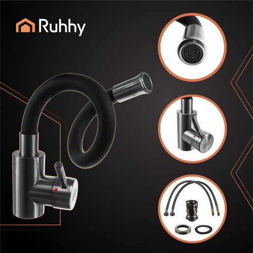 Elasztikus Konyhai Csaptelep RUHHY 360° Perlátorral – Szilikon és Rozsdamentes Acél, Fekete/Ezüst