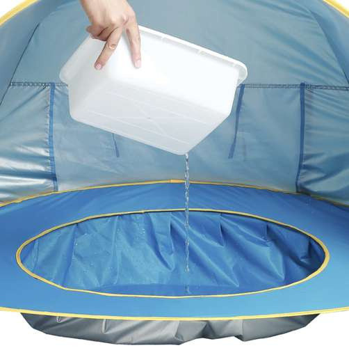 • BEÉPÍTETT MEDENCE – Emellett a sátor alja vízhatlan szövet medencével van felszerelve, amely vízi játékokhoz vagy homokozóként is használható. Elég egy gödröt ásni a medencének a strandon, és ráhelyezni a sátrat.