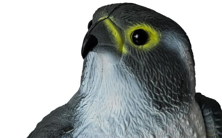 • NAGY, REÁLIS ÉS SZILÁRD - a riasztó nagy, a részletekre való odafigyeléssel készült, gondosan reprodukált részletekkel; a sólyom valósághű utánzása valódi madarat utánoz, és vizuális fenyegetést jelent; A sólyom tartós műanyagból készült, ellenáll az időjárási viszonyoknak és az UV sugárzásnak, ami befolyásolja a használat hosszát.