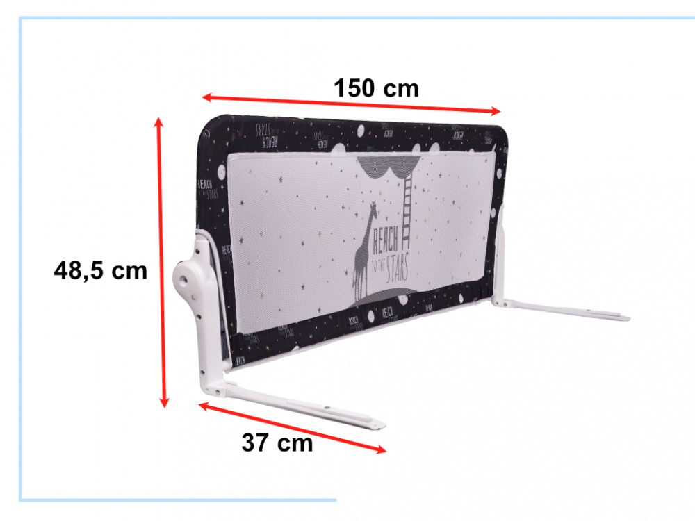 Praktikus ágyrács. Ez biztosítja a nyugodt éjszakai alvást és a bizonyosságot, hogy gyermeke nem fog a földre esni. Hihetetlenül könnyű felszerelni, egyszerűen csúsztassa a matrac alá. Anyag: fémkeret + műanyag. A korlát szélessége: 150 cm. Magasság: 45cm.