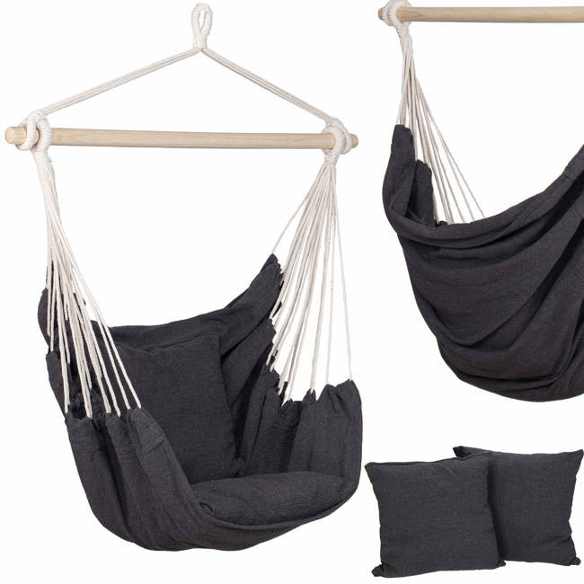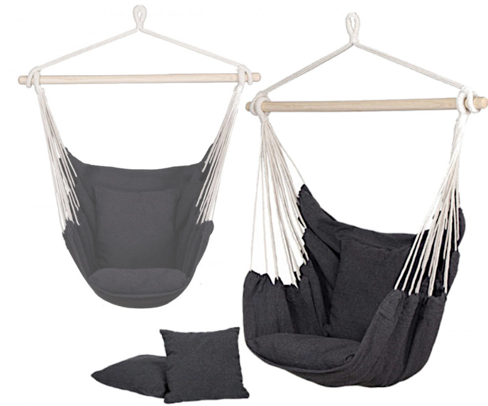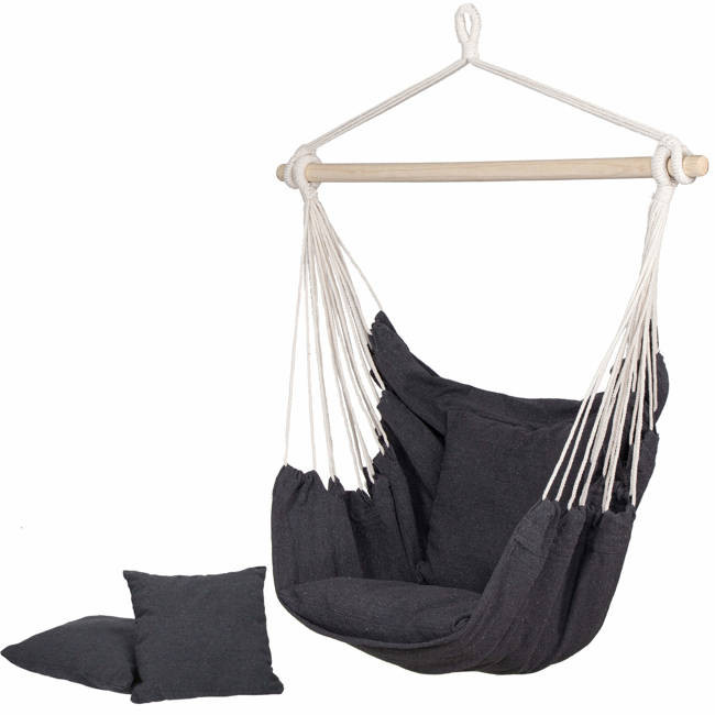 Brazil függőágy és szék egyben. A kiegészítő párnák felejthetetlen pihenést biztosítanak otthon és a kertben. A keresztrúdnak és a vastag szövésű köteleknek köszönhetően a függőágy stabil és biztonságos. Méretek: 130x100cm. Rúd hossza: 100cm.