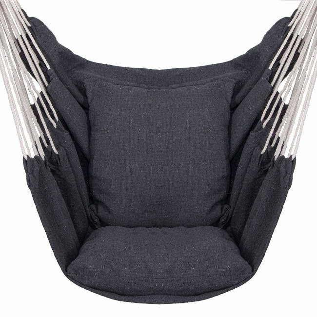 A keresztirányú rúdnak és az erős, vastag szövésű köteleknek köszönhetően a függőágy stabil és biztonságos lesz használat közben.