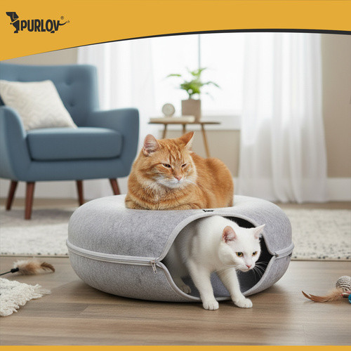 Macskaágy - Alagút PURLOV 25810: Ergonomikus és Könnyen Tisztítható Macskaágy, Természetes Filc, 51 x 20 cm