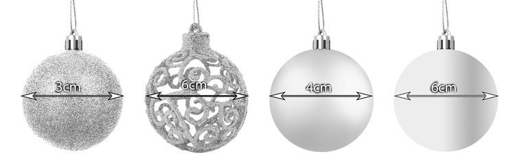 • KÜLÖNBÖZŐ MÉRETEK ÉS TÍPUSOK - a csecsebecsék készlete akár 4 klasszikus mintából és 3 méretből áll, amelyek mindenki számára tetszeni fognak. A dísztárgyak átmérője 3, 4 és 6 centiméter . Matt, csillogó és fényes felülettel rendelkeznek. Tartalmazzák a hatékony áttört felületű csecsebecséket is. Egy gyönyörű csillogó csillag lesz a karácsonyfa díszítési folyamatának csúcspontja.