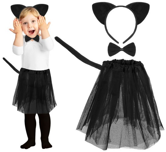 • TELJES KELLEM - Cica - a készlet 4 részből áll: kényelmes szoknya, füles fejpánt, csokornyakkendő és farok . Az álarc vizuálisan vonzó, érdekes megjelenésű és esztétikus kivitelben. Ezek kellemes tapintású kiegészítők lehetővé teszi, hogy gyermeke igazi cicává változzon!