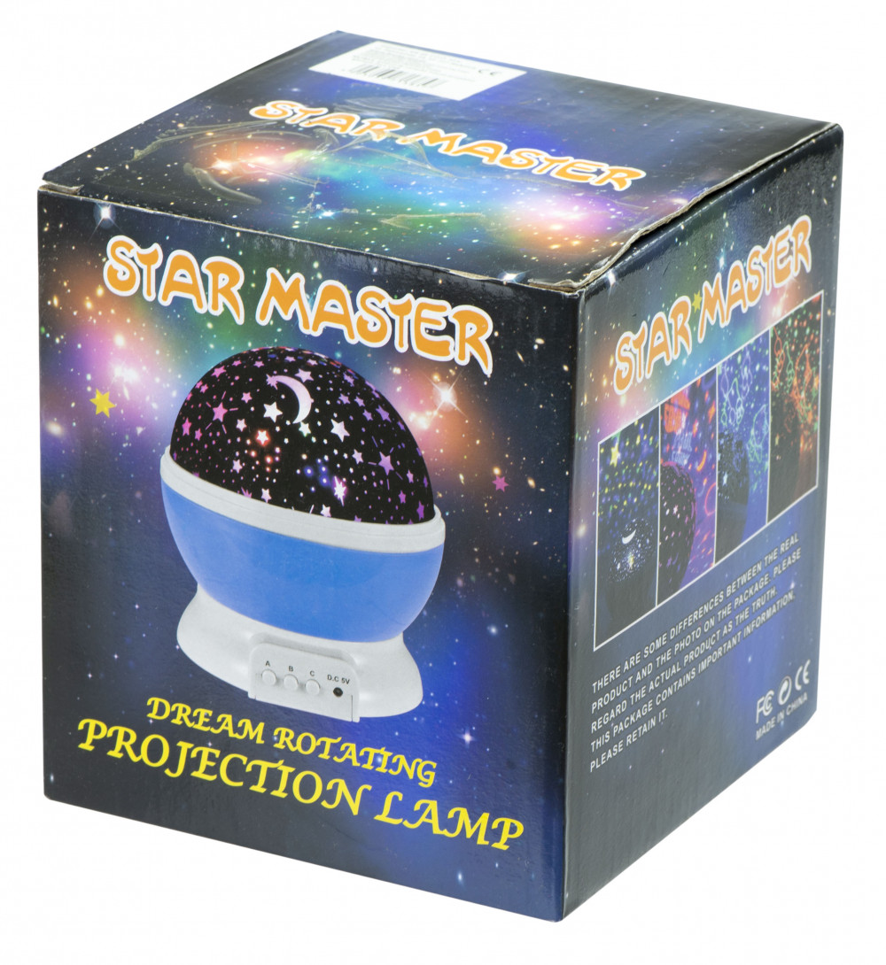 A lámpa a csillagos égbolt kivetítéseit különböző színekben és módokban jeleníti meg, - például sima színváltás vagy egyes színek kikapcsolása. Könnyen kezelhető, az előlapon található A-B-C gombokkal vezérelhető. Az A gombbal a készülék be- és kikapcsolható, a B gombbal a 9 kijelzési mód közül választhatunk, a C gombbal pedig a lámpa forgási mechanizmusát kapcsolhatjuk be/ki.