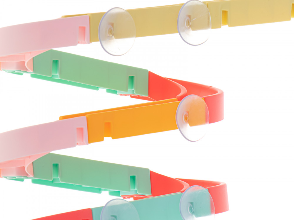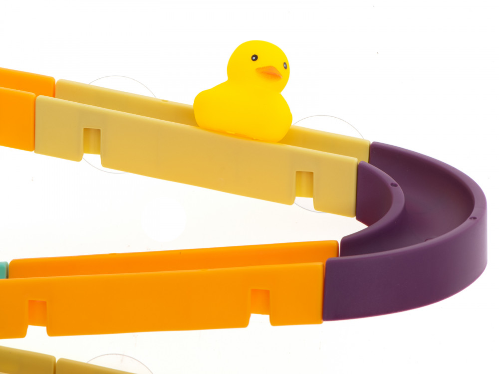 A játék tapadókorongokkal van ellátva, amelyek megkönnyítik a pálya rögzítését a csempéhez vagy a fürdőkádhoz.