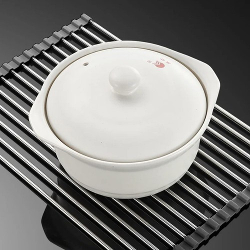 • UNIVERZÁLIS - A hengerelt szőnyeg nemcsak az edények szárítását teszi lehetővé mosogatás után, hanem a gyümölcsök és zöldségek öblítését és szárítását is anélkül, hogy az edényeket kivenné a mosogatóból. Használja melegedények és edények állványaként is.