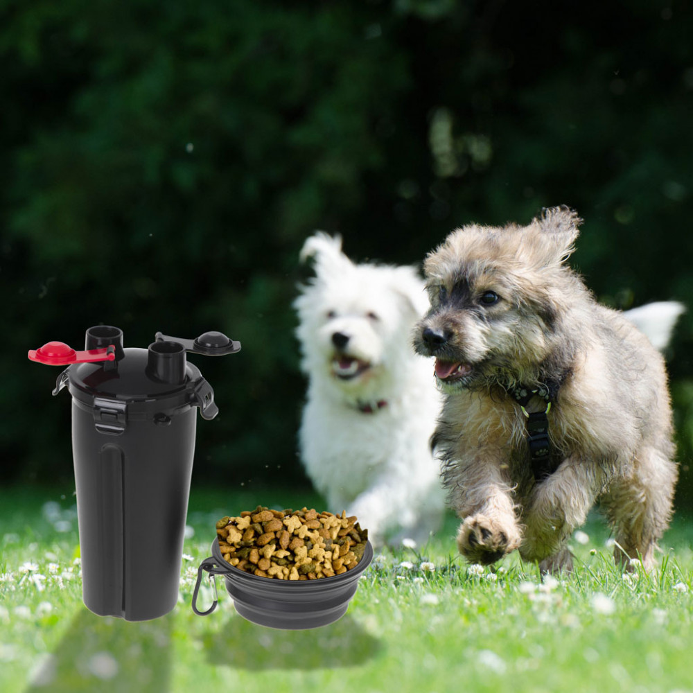 Összecsukható tál is tartozik hozzá, amelybe vizet önthet vagy ételt önthet, hogy könnyebben etethesse kutyáját.