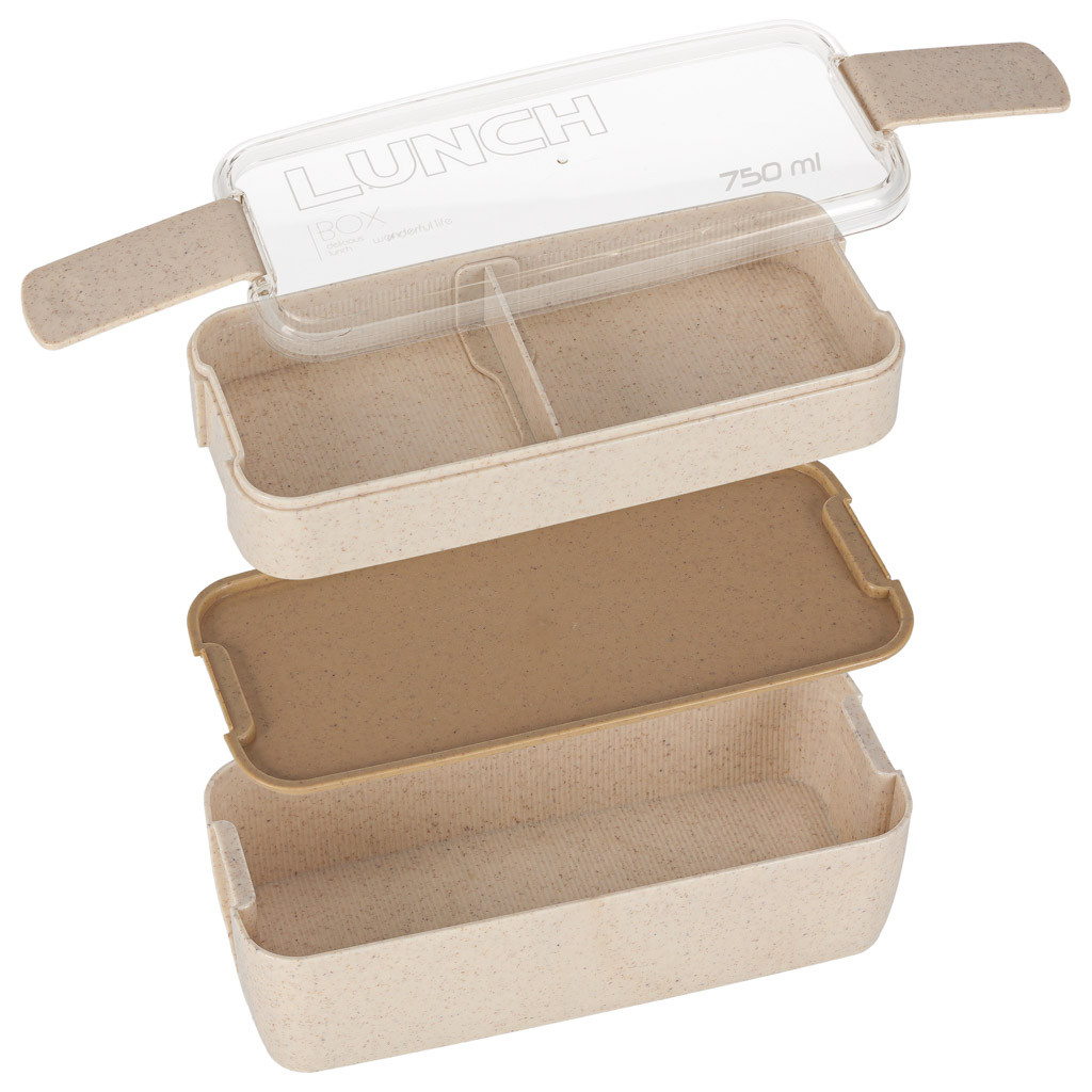 Praktikus 750 ml-es uzsonnásdoboz bézs árnyalatban. Tartalmaz két rekeszes tárolót, evőeszközöket és szivárgásmentes fedelet tömítéssel. Kiváló minőségű BPA-mentes műanyagból készült. Mosogatógépben és mikrohullámú sütőben mosható. Könnyű, kompakt és kényelmes használat.