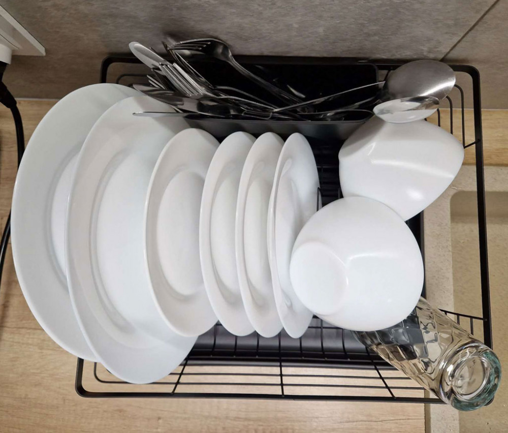 A szárítóban elegendő hely van nagy mennyiségű edény, evőeszköz és konyhai kiegészítő tárolására.