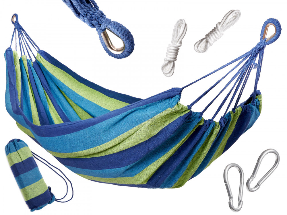 Egyszemélyes függőágy 200x100 megerősített kék + szerelőkészlet