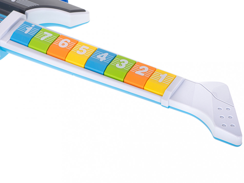 A gitár nyakán található, számokkal jelölt gombokkal egy kiválasztott tartományból akkordokat játszhatsz, és dallamot játszhatsz! Ez lehetővé teszi, hogy a fiatal gitáros igazi virtuóznak érezze magát, minden hang az előzőhöz illeszkedik!