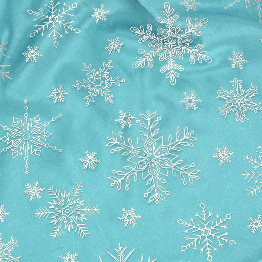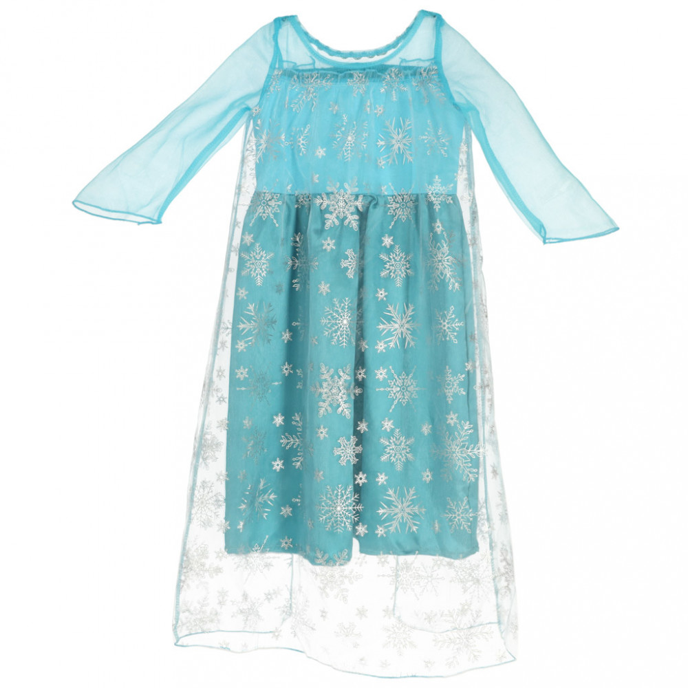 A ruha hátán egy félig áttetsző, hópehelymintákkal díszített köpeny található.