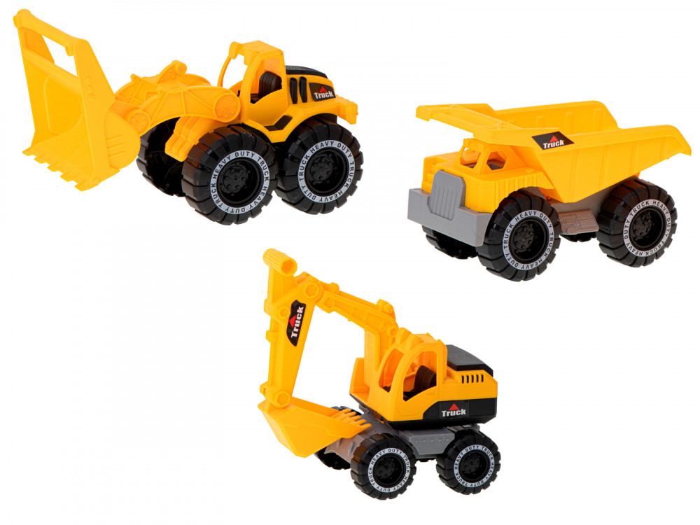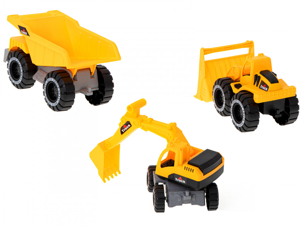 Építőipari gépek készlet 3 darab kotró dömper teherautó