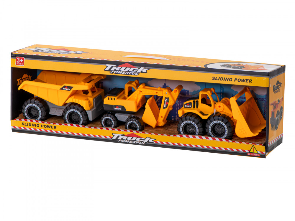 Három építőgépből álló készlet. A készlet tartalmaz egy buldózert, egy dömperkocsit és egy kotrógépet - ezek a járművek nélkülözhetetlenek álmaid építkezési területének megteremtéséhez. A játék serkenti a képzeletet és a kreativitást. Szín: sárga és fekete. Anyaga: műanyag. Az autók méretei: 13,9x9,5x9 cm-től.