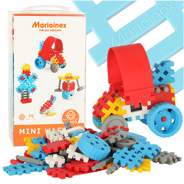 A Mini ostyás építőkocka 70 kék értékes, kreatív játékórákat biztosít gyermeke számára. Meg fogsz lepődni a leleményességén és az építés közbeni összpontosításán. A készlet 10 vadonatúj darabot tartalmaz, ami még több építési lehetőséget biztosít. A mellékelt használati utasítás inspirál a gyermekek számára vonzó formák építésére. A készlet akár 70 elemből is állhat. Fejleszti a gyermekek képzelőerejét, kézügyességét és logikus gondolkodásra tanít.
