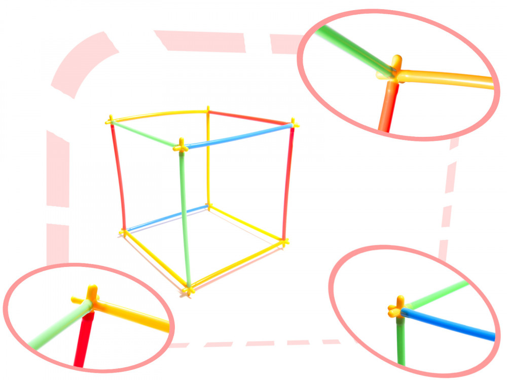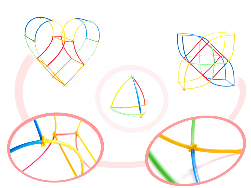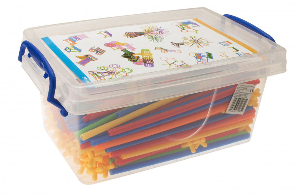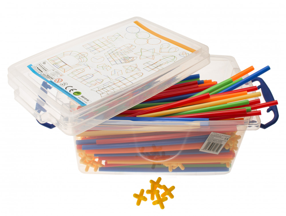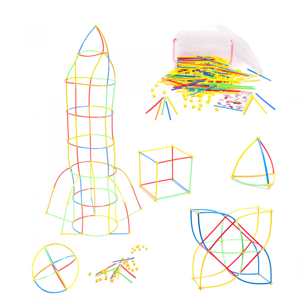 A csomag műanyag szívószálakat és műanyag kereszteket tartalmaz (160 db). A szalmaszálak és a keresztek kombinálásával különféle konstrukciókat hozhat létre. A szívószálak nem morzsálódó műanyagból készülnek. A csomag 340 építőelemet tartalmaz.