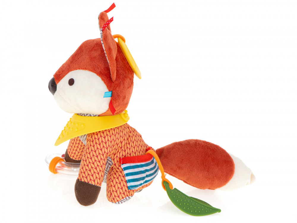 Színes, rókaszerű érzékszervi kabala. Különböző anyagokat használtak a tapintás, a hallás és a látás érzékszerveinek stimulálására. A játék csörgő és csörgő funkcióval és csengővel rendelkezik. A kabala a babakocsira vagy a kiságyra akasztható. Méretek: 20x13cm.