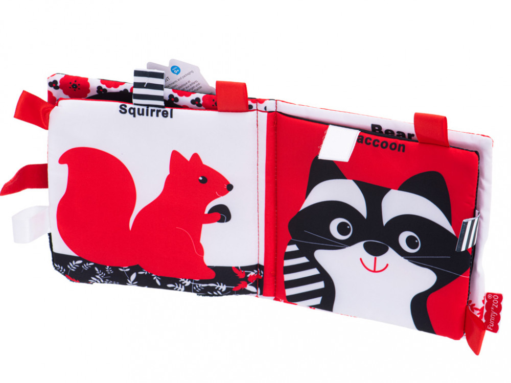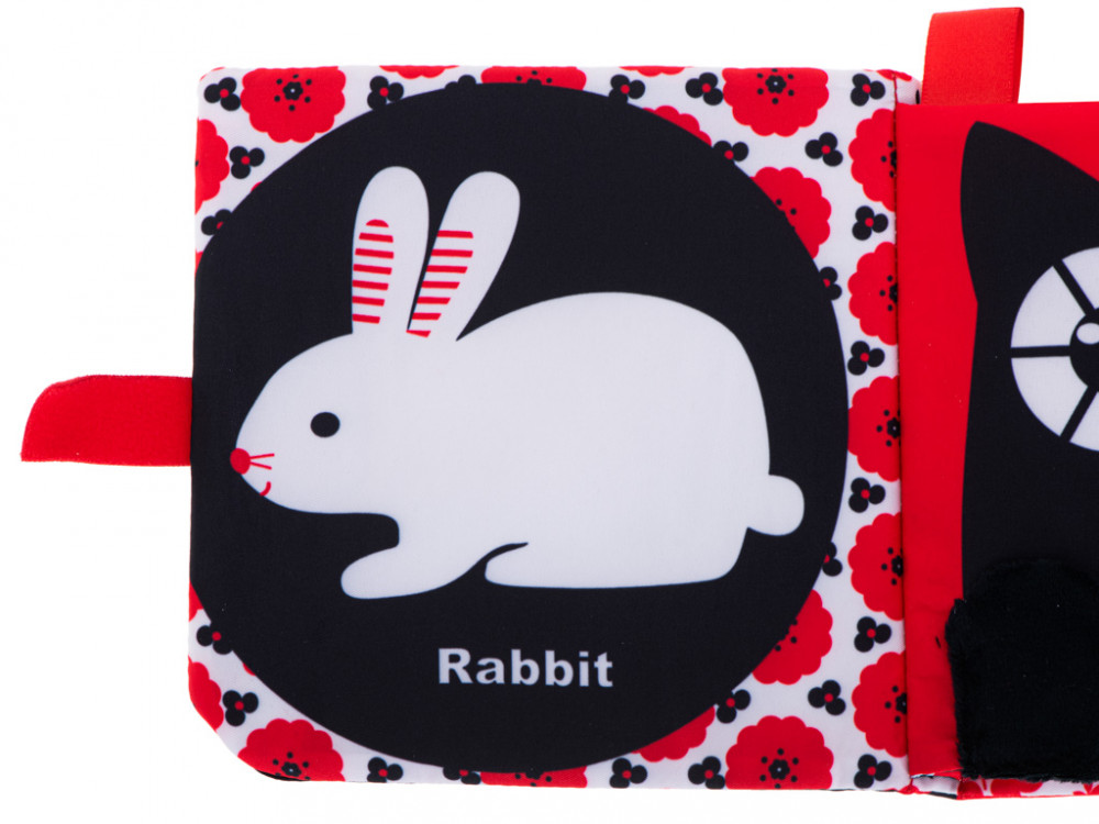A kontrasztos mintákkal ellátott varázslatos szövetkönyv nagyszerű a világ felfedezését most kezdő gyermekek számára. A fehér, fekete és piros képek remek bevezetést nyújtanak az állatok megismeréséhez.