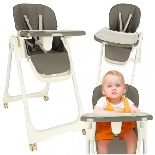 Etetőszék kerekeken, állvánnyal, összecsukható szürke
