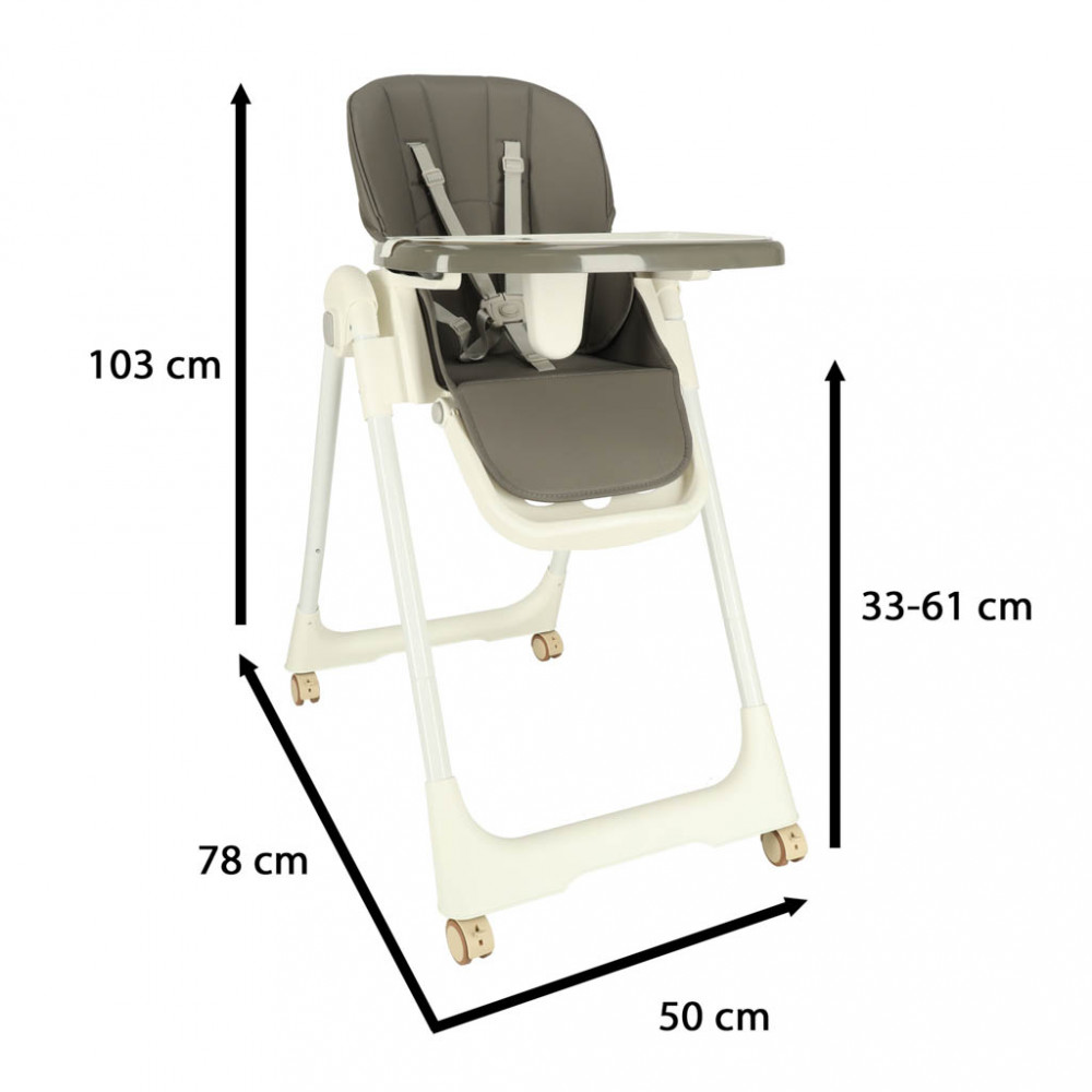 Csecsemő etetőszék levehető görgőkkel. Állítható ülésmagassággal és a háttámlától való távolsággal rendelkezik. Segítségével gyermeke minden étkezése kellemes és biztonságos lesz. Max. terhelés: 20 kg. Életkor: 6-36 hónap. Méretek: 50x78x103cm.