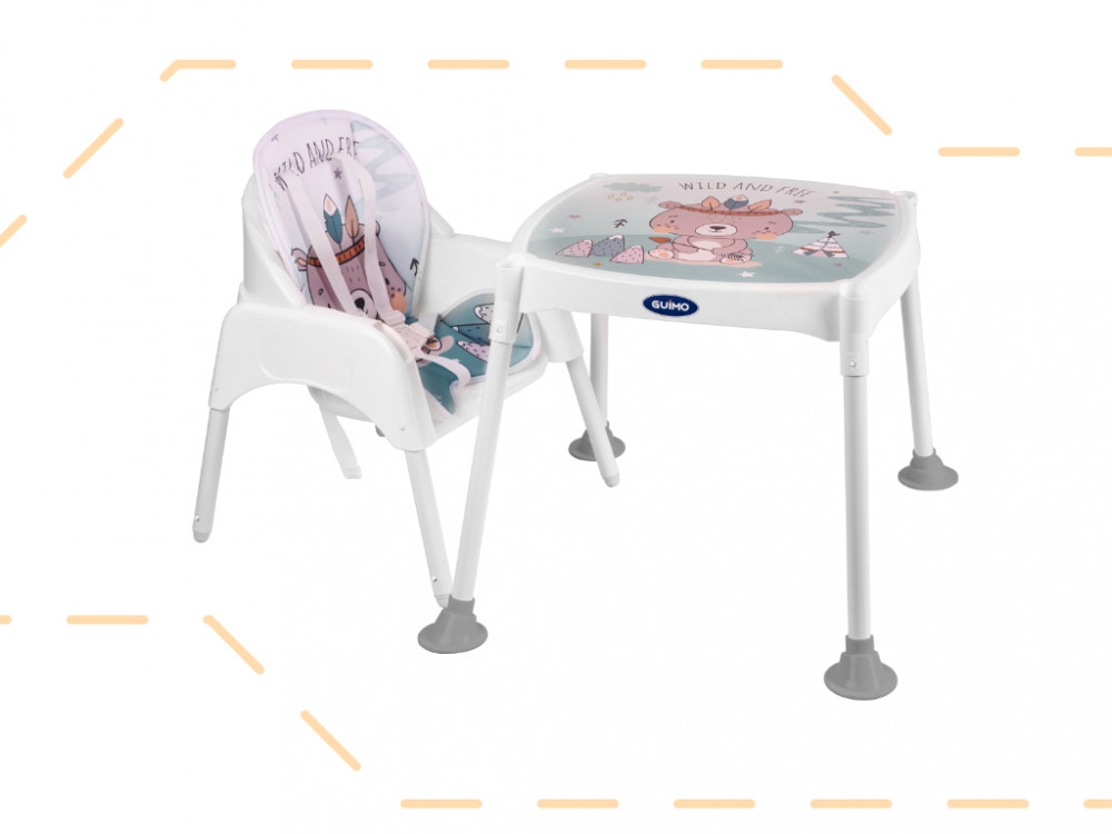 A széknek három különböző funkciója van! 6 és 36 hónapos kor közötti babák számára etetőszékként használható, és amikor a kicsi túl nagy lesz, etetőszékké és asztallá alakítható. Ez a kombináció nemcsak kényelmes étkezést tesz lehetővé, hanem rajzoláshoz és játékhoz is kiváló! Ebben a formában hatéves korig szolgálja a célját!