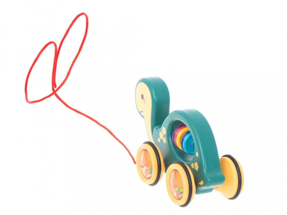 A csörgőhöz egy hosszú zsinór van rögzítve , így kényelmesen húzhatod magad után! Ez lehetővé teszi, hogy a teknőst hosszú sétára és nagy kalandra vigye!