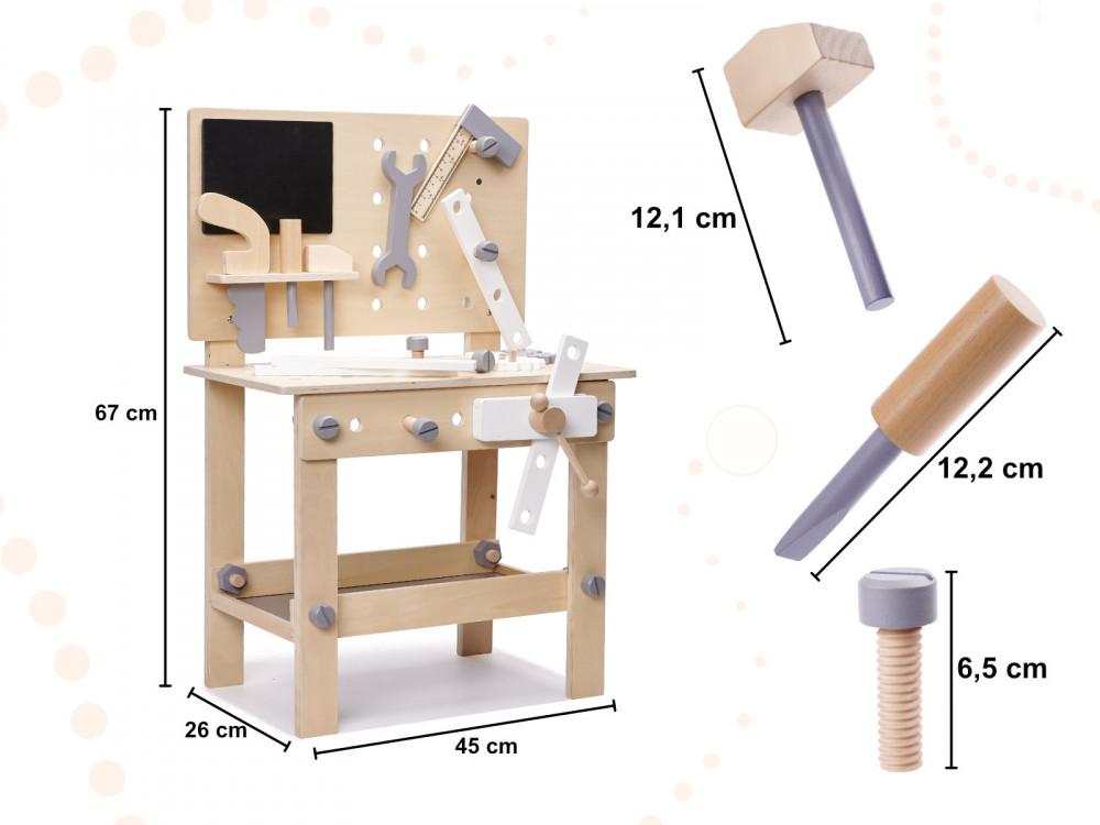A műhely egy nagyszerű, fejlesztő szórakozásra vonatkozó javaslat, és egy ragyogó ajándékötlet egy kis szerszámszerető számára.
