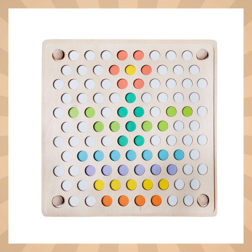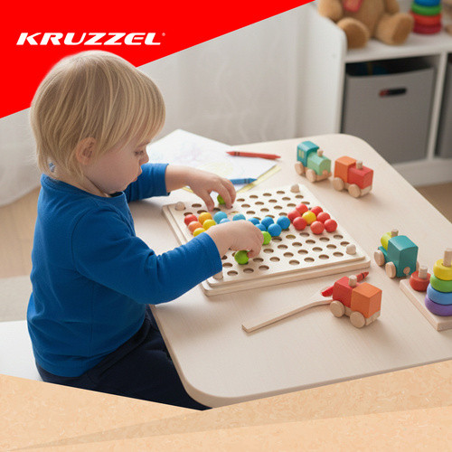 Fából készült kirakós színes gyöngyökkel, motorikus készségek fejlesztéséhez
