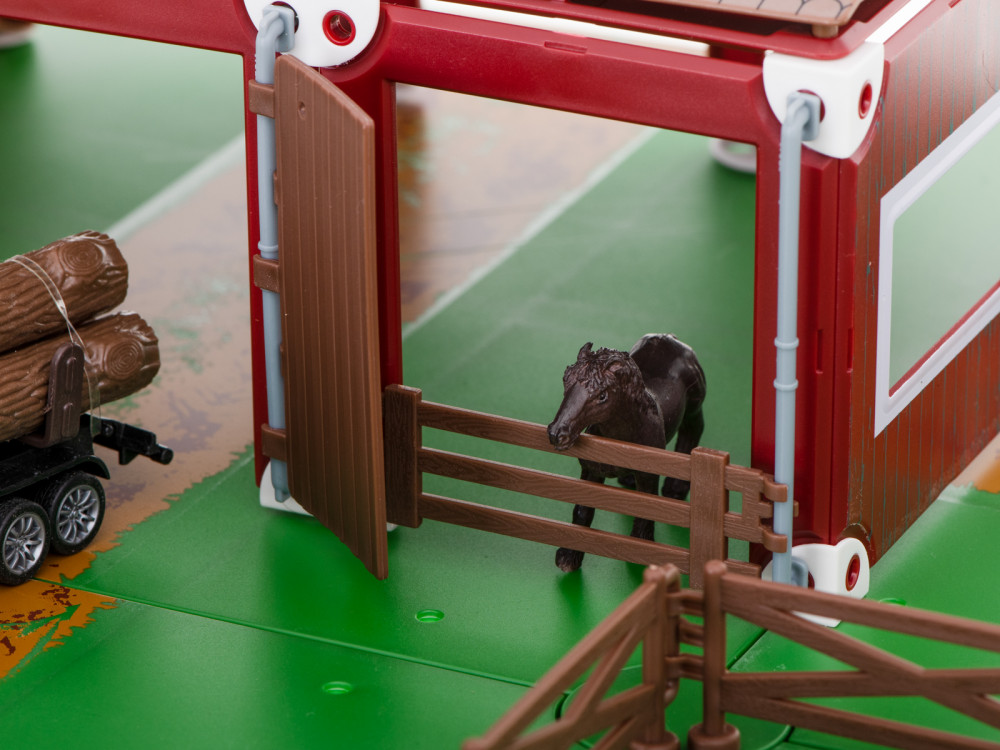 Az egész készlet esztétikus kivitelezésével nyűgöz le. Minden elem úgy készült, hogy a lehető legjobban hasonlítson az eredetihez. A traktorok kéményei, a vezetőfülke felszerelése, valamint olyan külső elemek, mint a karosszéria és a jellegzetes terepjáró kerekek, reprodukálva vannak. A pajta tetőszerkezetét "cserepezték", oldalait falapok mintázata díszíti, és ereszcsatornák is voltak. Az istálló belsejét kisebb karámokra osztották, hogy éjszaka az állatoknak legyen hol pihenniük, a traktorok pedig parkolni tudjanak.