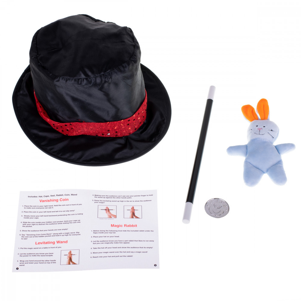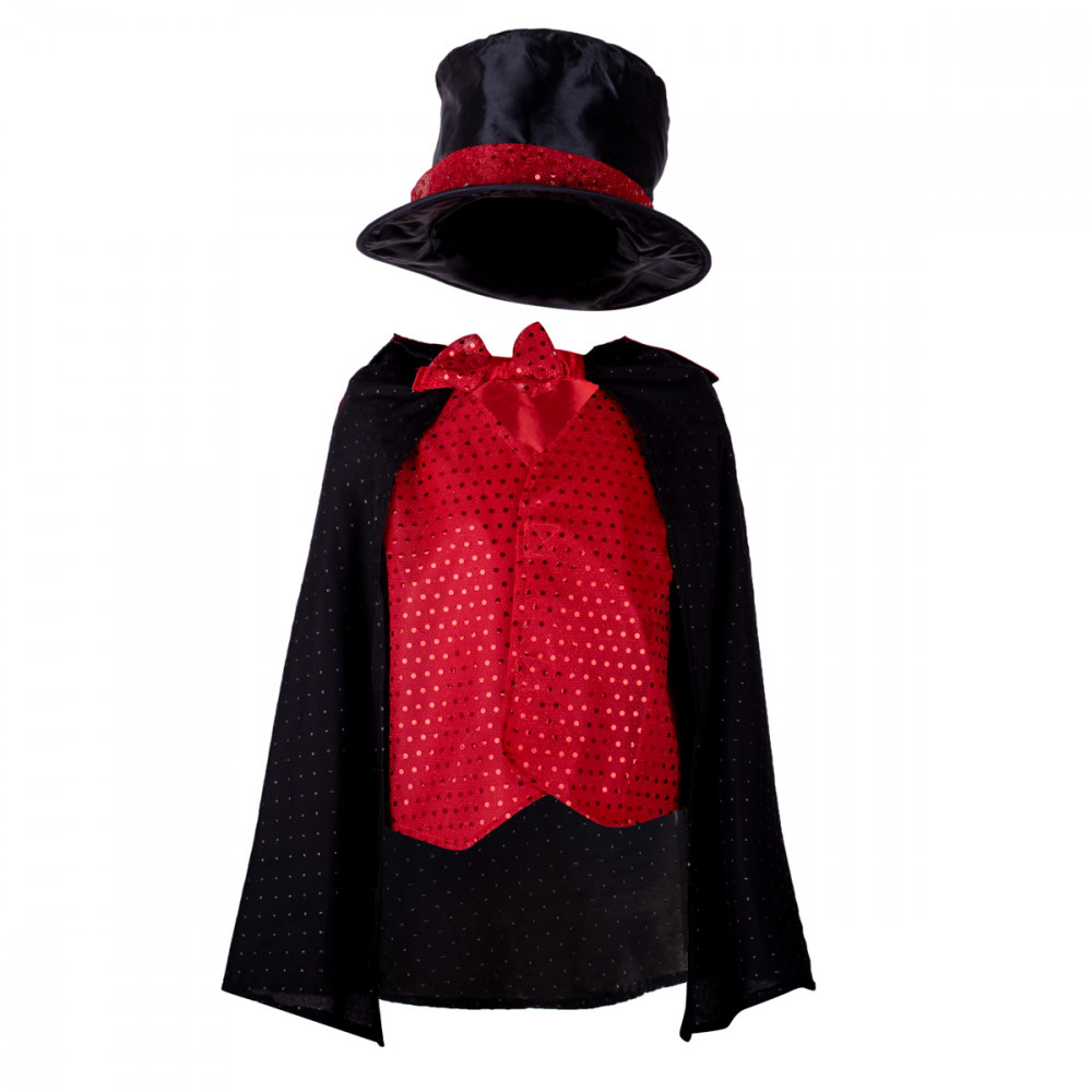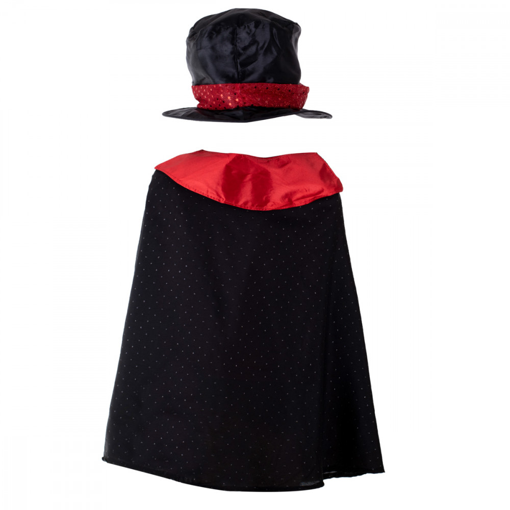 Többrészes bűvészjelmez. Az igazi mágus alapvető tulajdonságaiból áll. Csillogó flitteres anyaggal díszített jelmez. Nylonból készült. A jelmez ideális 3-8 éves korú lányoknak és fiúknak.