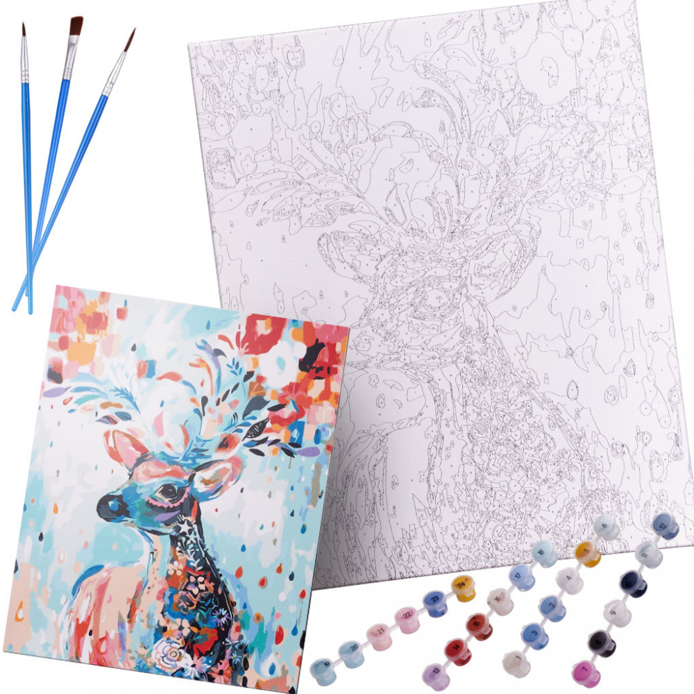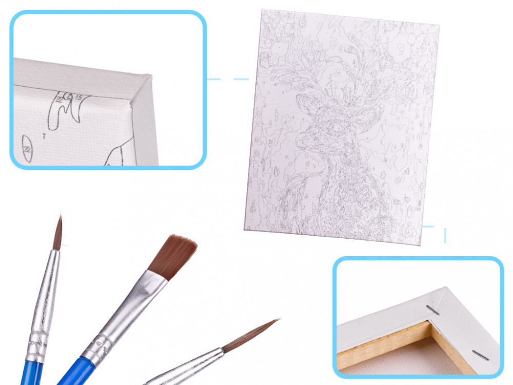 Festés a számok alapján. Egy olyan trend, amelyet az emberek szerte a világon megszerettek. A megfelelő dobozokat a megfelelő festékekkel kell kiszínezni. Nyugtató hatású és türelemre tanít. Tartalmazza: festékek, 3x ecset, akasztó. Tervezés: szarvas. A vászon mérete: 50x40cm.