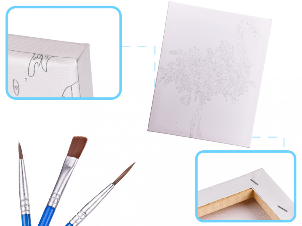 Festés a számok alapján. Egy olyan trend, amelyet az emberek szerte a világon megszerettek. A megfelelő dobozokat a megfelelő festékekkel kell kiszínezni. Nyugtató hatású és türelemre tanít. Tartalmazza: festékek, 3x ecset, akasztó. Mintázat: flamingó. A vászon mérete: 50x40cm.