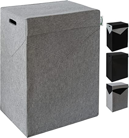 Eredeti, filcből készült szennyeskosár, amely nemcsak a ruhák könnyű tárolására szolgáló praktikus tároló lesz, hanem bármely fürdőszoba feltűnő kiegészítője is.