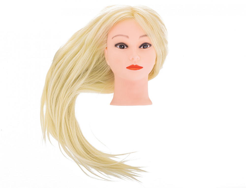 Fodrász gyakorlófej természetes hajjal. Sok könnyebb és fejlettebb frizura is elvégezhető rajta. A modell nem tartalmazza a készlethez tartozó fogantyút. Hajszín: szőke. Fóliába csomagolva.