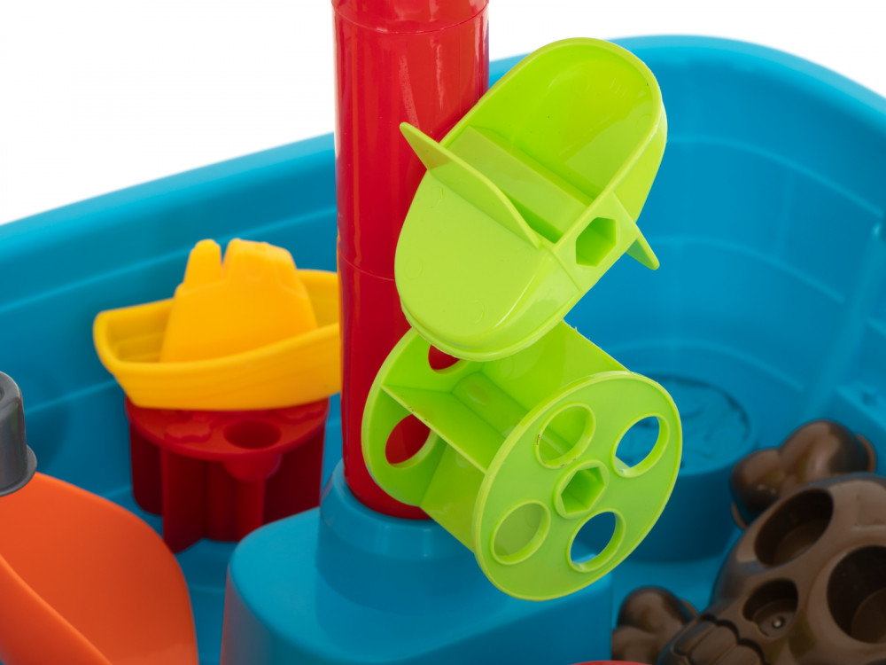 A fantasztikus, kiegészítőkkel teli vizes és homokos játékkészlet órákra leköti a kis tengerészedet!