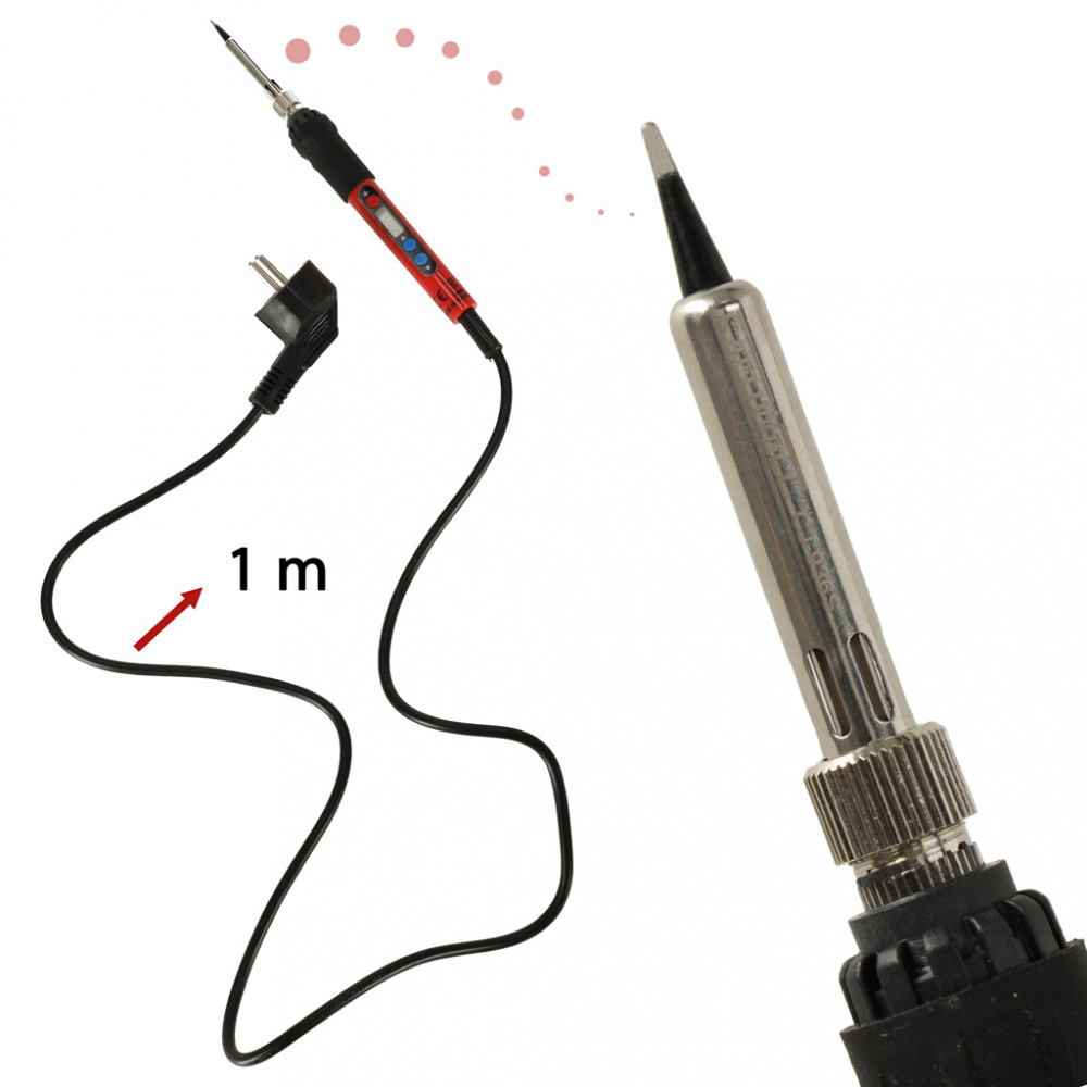 Fűtött ellenállásos forrasztópáka 1°C-ig szabályozható hőmérséklettel és beépített LCD kijelzővel. A kompakt méret és a precíziós hegy lehetővé teszi a pontos forrasztást. Be-/kikapcsolóval rendelkezik. Teljesítmény: 80 W. Forrasztópáka: 20,5 x 2,5 cm. A hegy hossza: 1,5 cm.