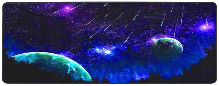 Nagyméretű, fantasztikus, játékra alkalmas íróasztaltömb űrmintával. Vízálló anyagból készült, amely védi az íróasztal felületét, és nem befolyásolja az optikai egerek pontosságát. Csúszásmentes alappal rendelkezik. Méretek: 90x40cm.