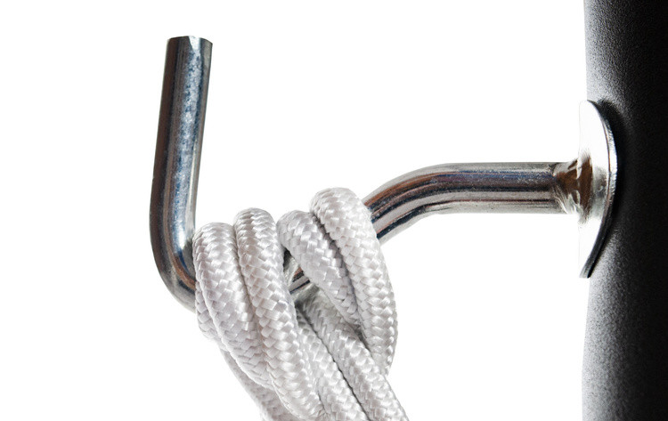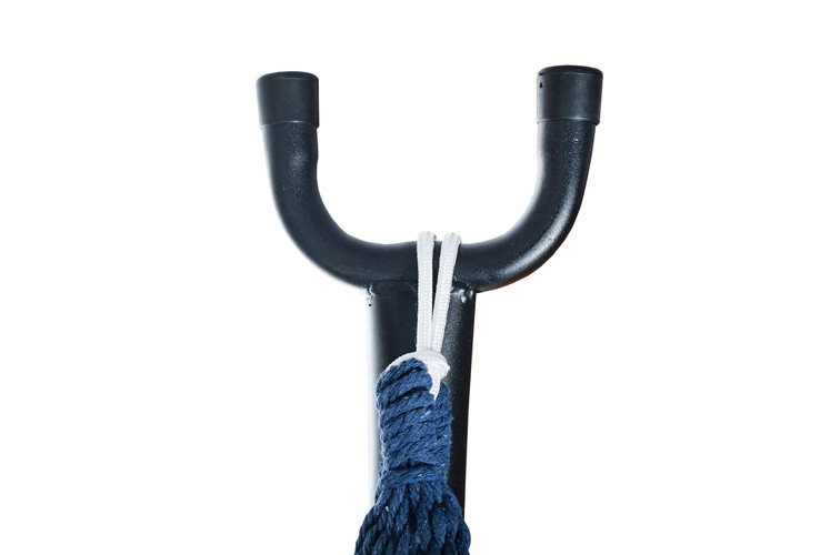 Masszív fémkampókkal és vastag fonott kötelekkel rendelkezik, amelyek a levegőben tartják