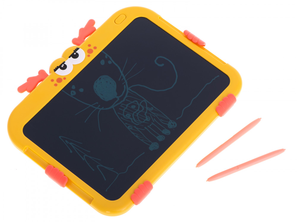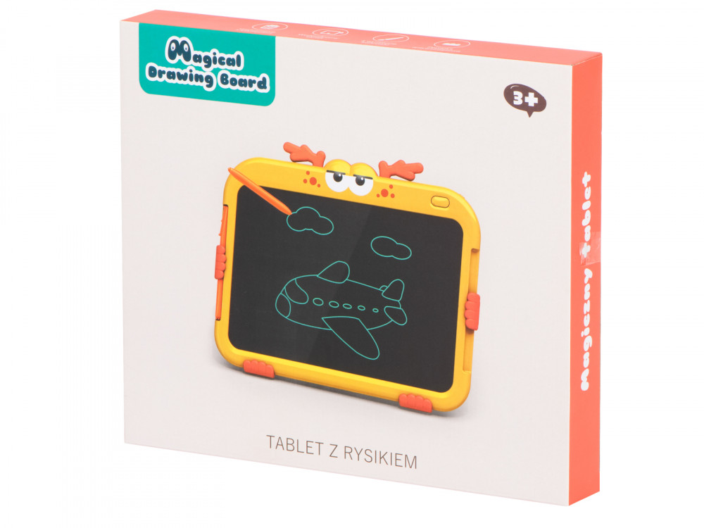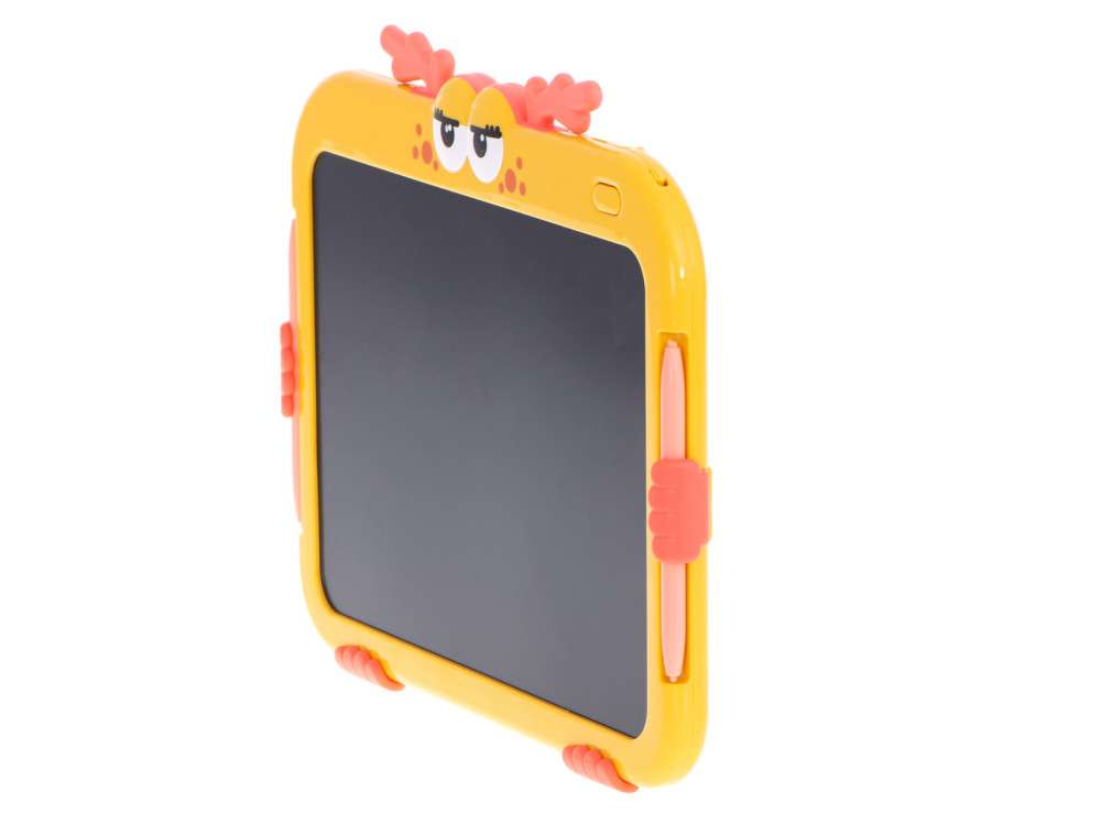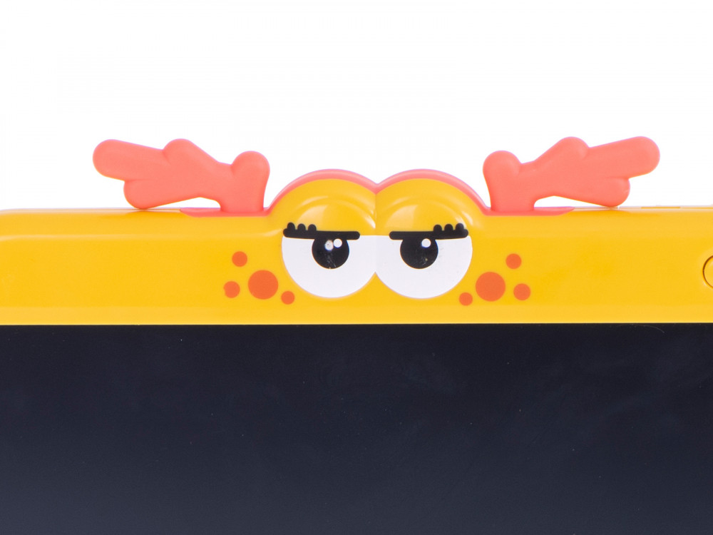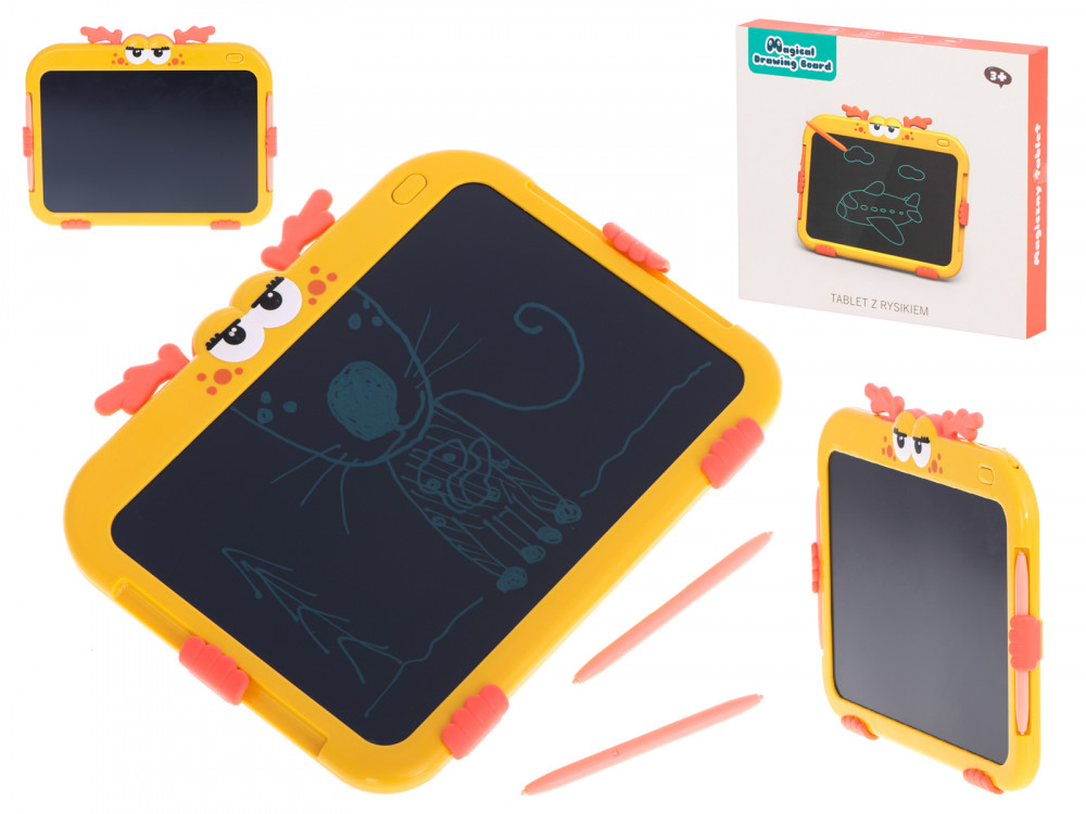 Grafikus tábla rajzoláshoz - szarvas design. Ideális a kis művészeknek. Nagyszerű szórakozást nyújt egy hosszú utazás során. Tartalmazza: tablet, 2 toll, akkumulátor. Szín: sárga. Tápegység: CR2025 3V-os elem (tartozék). Tablet méretei: 24x18x1.5cm.